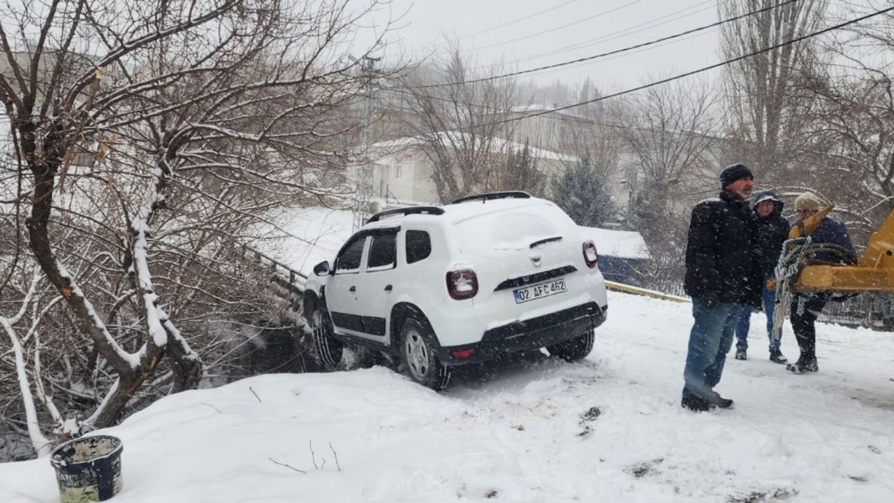 Adıyaman'da etkisini artıran kar yağışı, sürücülere zor anlar yaşattı. Merkeze bağlı Zey Köyü'nde, 02 AFC 462 plakalı araç, kayganlaşan yolda kontrolden çıkarak köprüden uçma tehlikesi geçirdi. Aracın ön kısmı köprüde askıda kaldı.