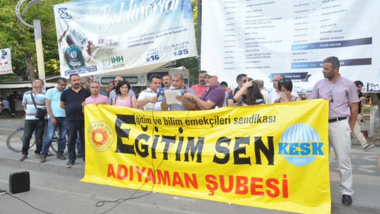 Eğitim Sen Adıyaman Şubesi Başkanı Mehmet Dağdeviren, burada yaptığı açıklamada, "Türkiye’deki istihdam politikalarının geleceğini belirleyeceği iddia edilen ve çalışma yaşamının tüm alanlarında esnek, güvencesiz ve angarya çalışmayı esas alan “Ulusal İstihdam Stratejisi”nin bir uzantısı olarak, öğretmen yetiştirme sistemi ve öğretmen istihdamını günümüzün piyasa değerleri olan “performans”, “rekabet”, “verimlilik”, “kariyer” vb gibi kavramlar üzerinden şekillendirmek amacıyla, Milli Eğitim Bakanlığı tarafından “Öğretmen Strateji Belgesi” hazırlanmış ve 9 Haziran 2017 tarihinde Resmi Gazetede yayınlanmıştır.