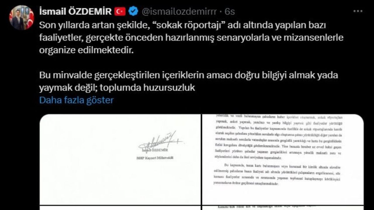 “Son yıllarda artan şekilde, 'sokak röportajı' adı altında yapılan bazı faaliyetler, gerçekte önceden hazırlanmış senaryolarla ve mizansenlerle organize edilmektedir. Bu içeriklerin amacı doğru bilgiyi yaymak değil; halkı kin ve nefrete yönlendirmek, kamu düzenini bozmak ve dezenformasyon oluşturmaktır.”
