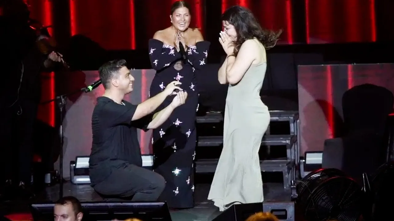 Konserin en duygusal anı, Yusuf Ali’nin solo bağlama çaldığı ve Sibel Can’ın “Ben seninim sen de benim” türküsünü seslendirdiği bölümde yaşandı. Usta müzisyen, türkünün sözlerini sevgilisine ithaf ederek sahneden evlilik teklifinde bulundu. Figen’in “Evet” yanıtıyla birlikte hem sahneden hem de izleyicilerden yoğun alkış yükseldi.